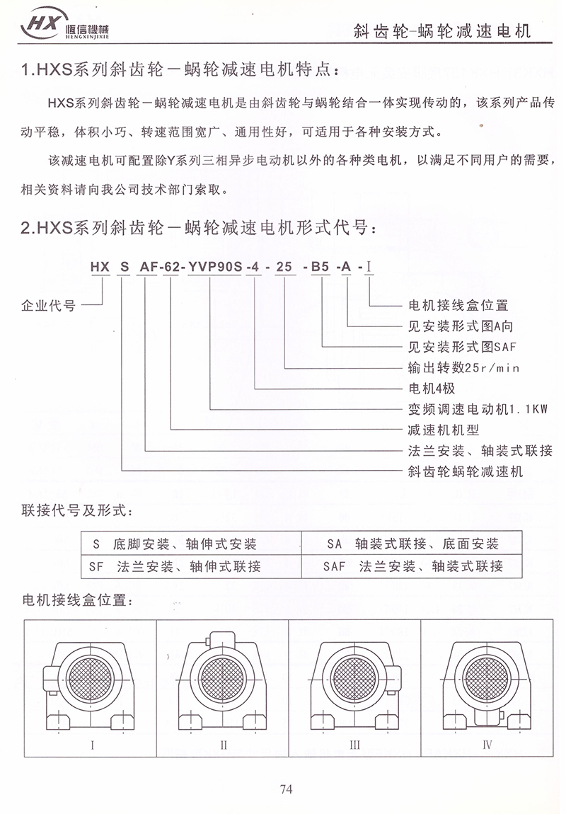 HXS系列斜齒輪蝸輪減速電機(jī)技術(shù)參數(shù)