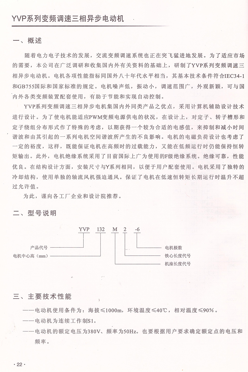 YVP系列變頻高速三相異步電動(dòng)機(jī)技術(shù)參數(shù)